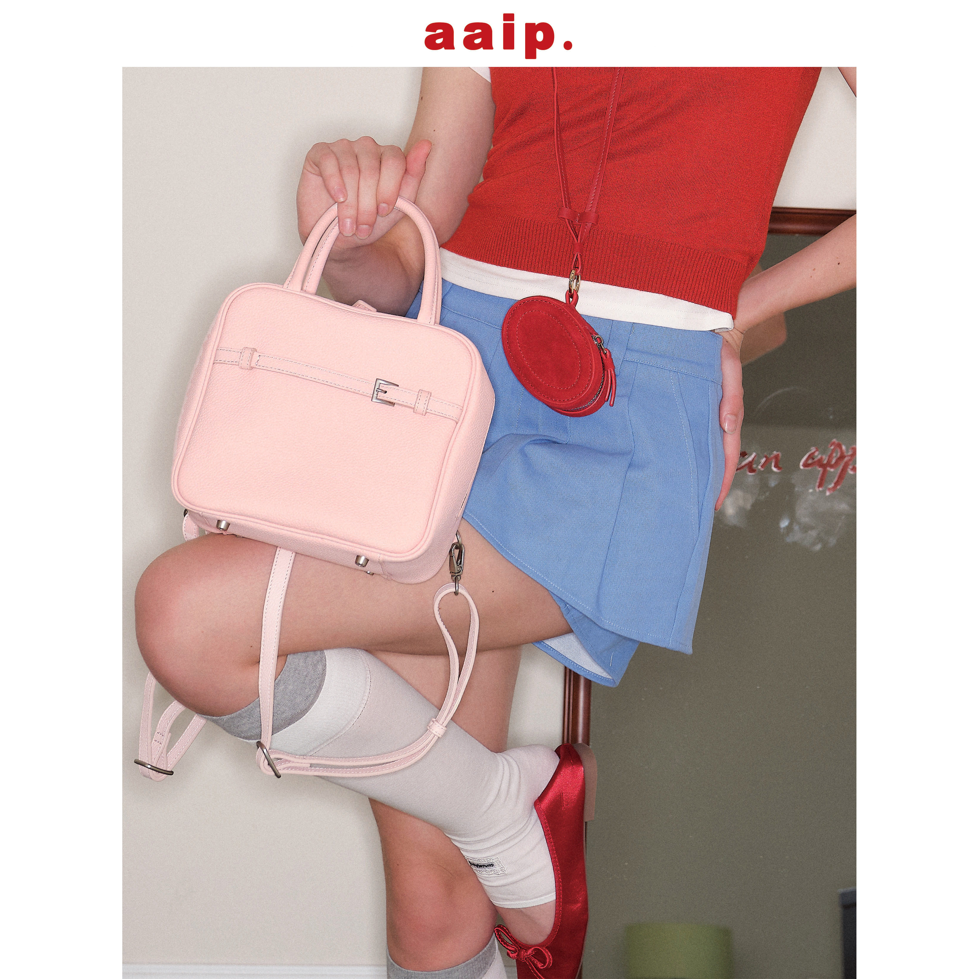 aaip礼物盒子拼接撞色吐司包法式真皮包女可爱蓝色荔枝纹小双肩包