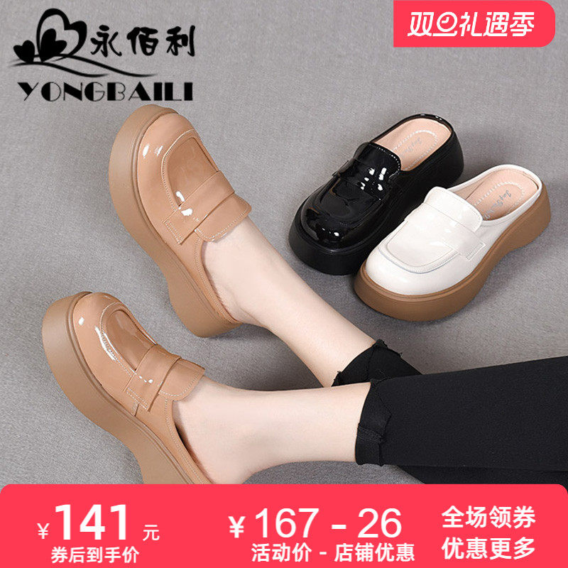 英国真皮包头半拖鞋女秋外穿2025新款一脚蹬厚底内增高勃肯鞋单鞋