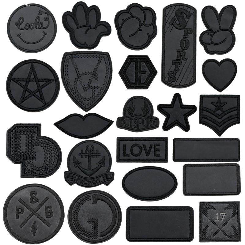 刺绣黑色自粘补丁贴皮衣服皮沙发皮包包皮革修复无痕修补装饰布贴