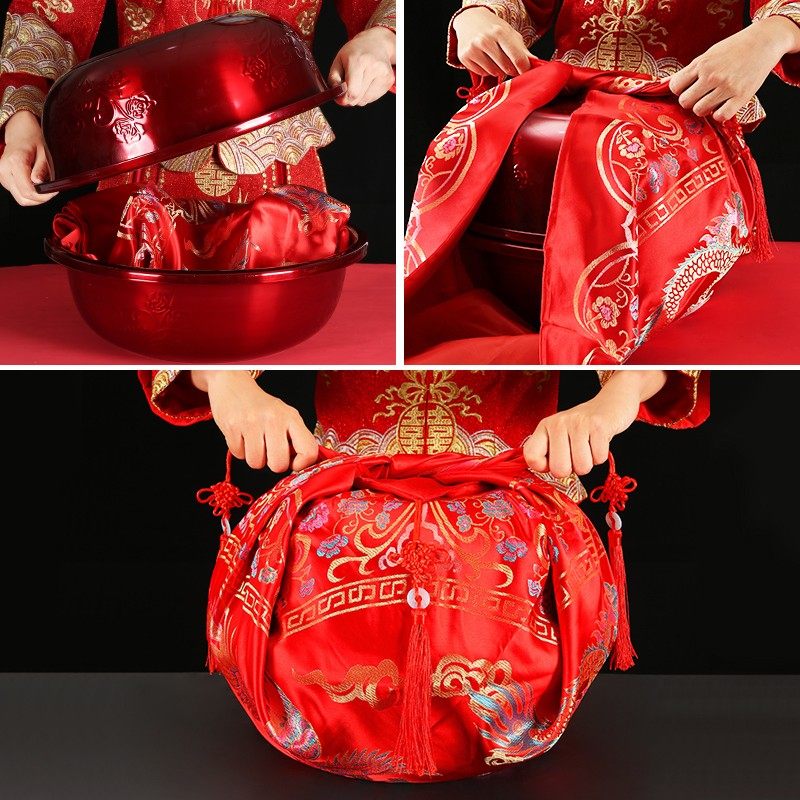 速发结婚用红妆袱方新娘陪嫁皮包准备婚庆用品包裹布包袱嫁娘家大