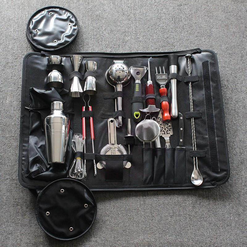 酒术调酒师工具包酒吧调酒器工具套装多功能防水斜跨黑皮包工具箱