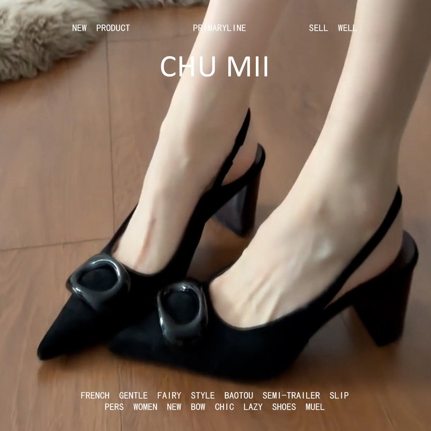 羊皮版~简约风真皮包头穆勒鞋女方头粗跟高跟鞋一脚蹬软底半拖鞋