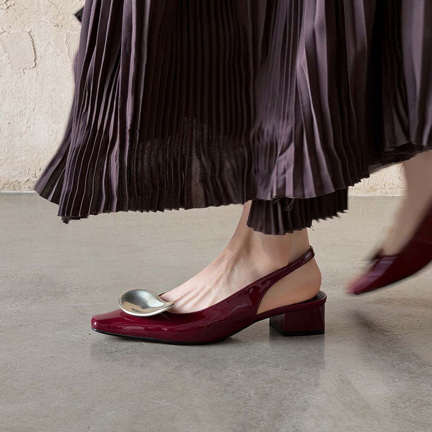 羊皮版!绝美金属扣尖头高跟鞋女温柔真皮包头凉鞋配裙子粗跟单鞋