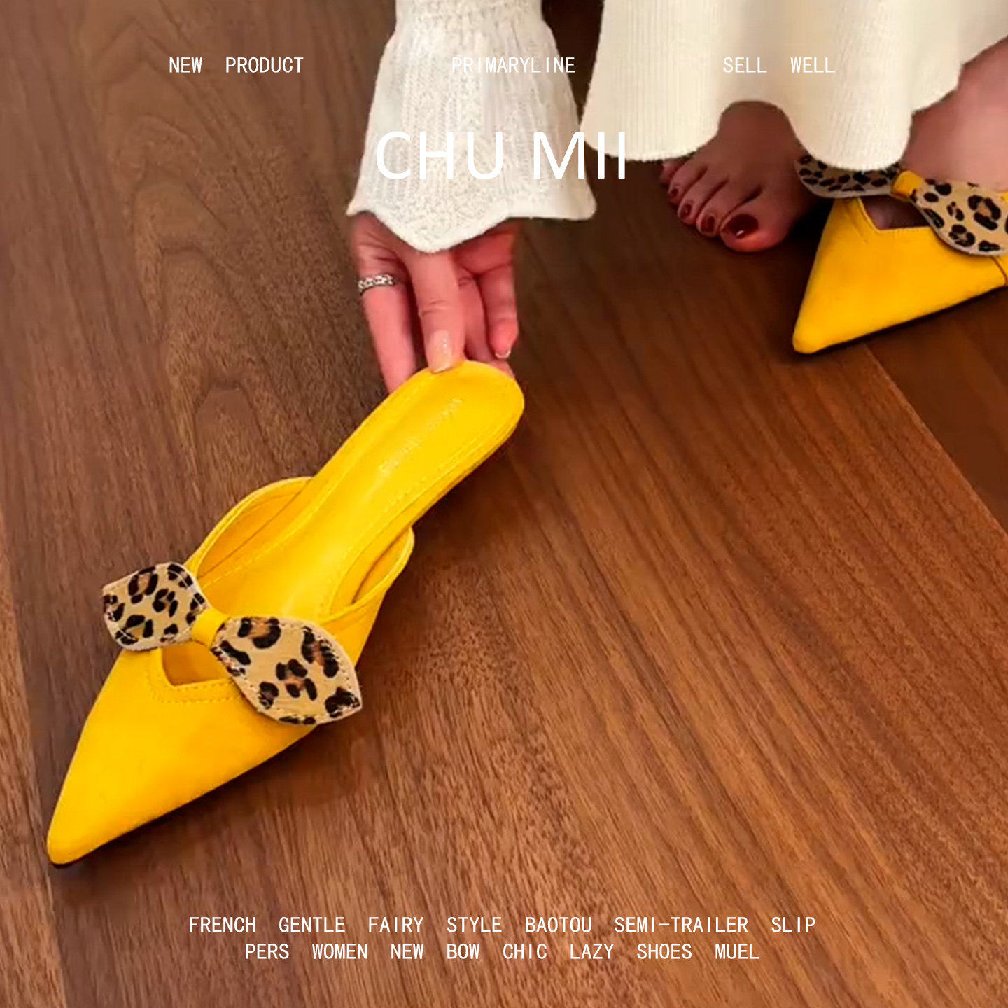 羊皮版!豹纹蝴蝶结真皮包头凉鞋女配裙子尖头高跟鞋百搭粗跟单鞋