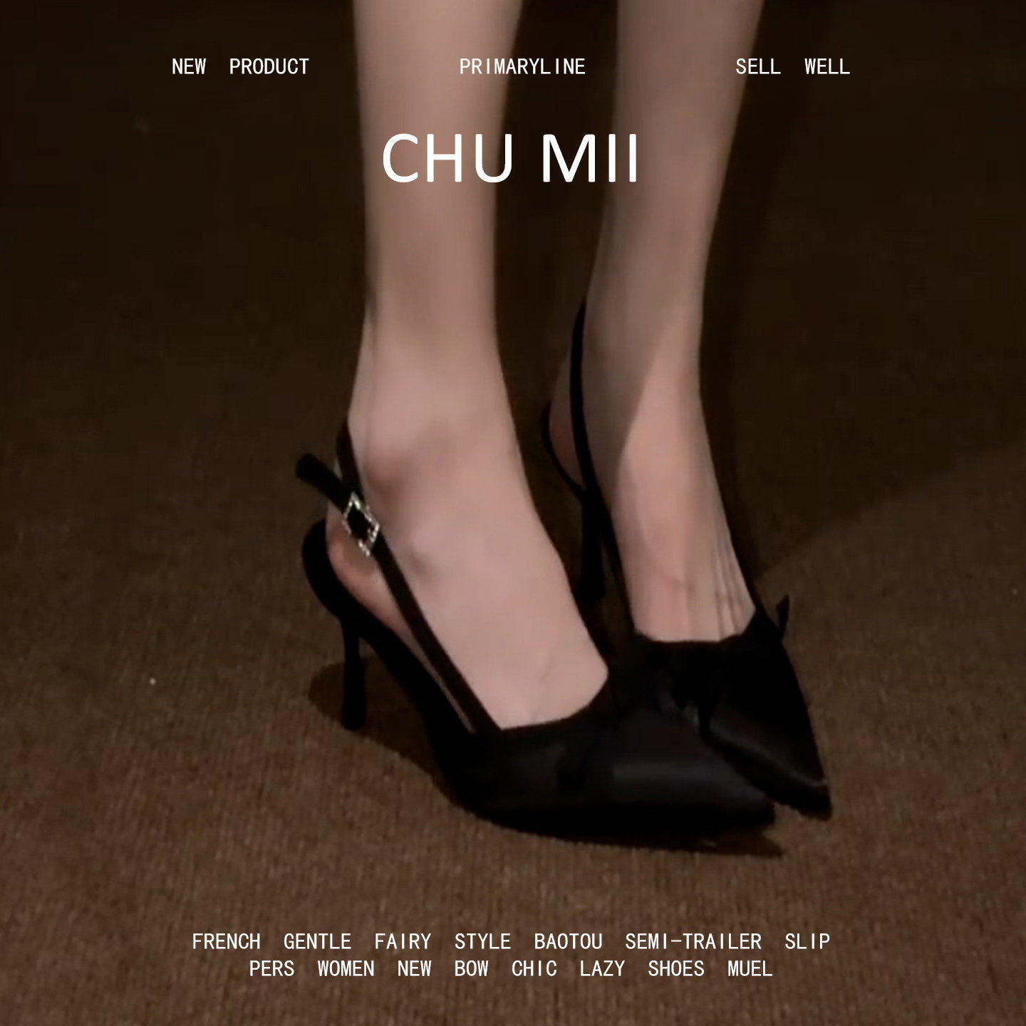 羊皮版-黑色蝴蝶结尖头单鞋女后绊带真皮包头凉鞋法式细跟高跟鞋