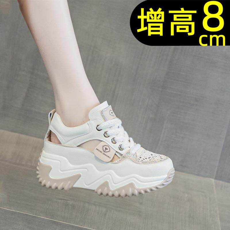 镂空老爹鞋内增高8CM真皮包头运动凉鞋2024夏季厚底休闲软底女鞋