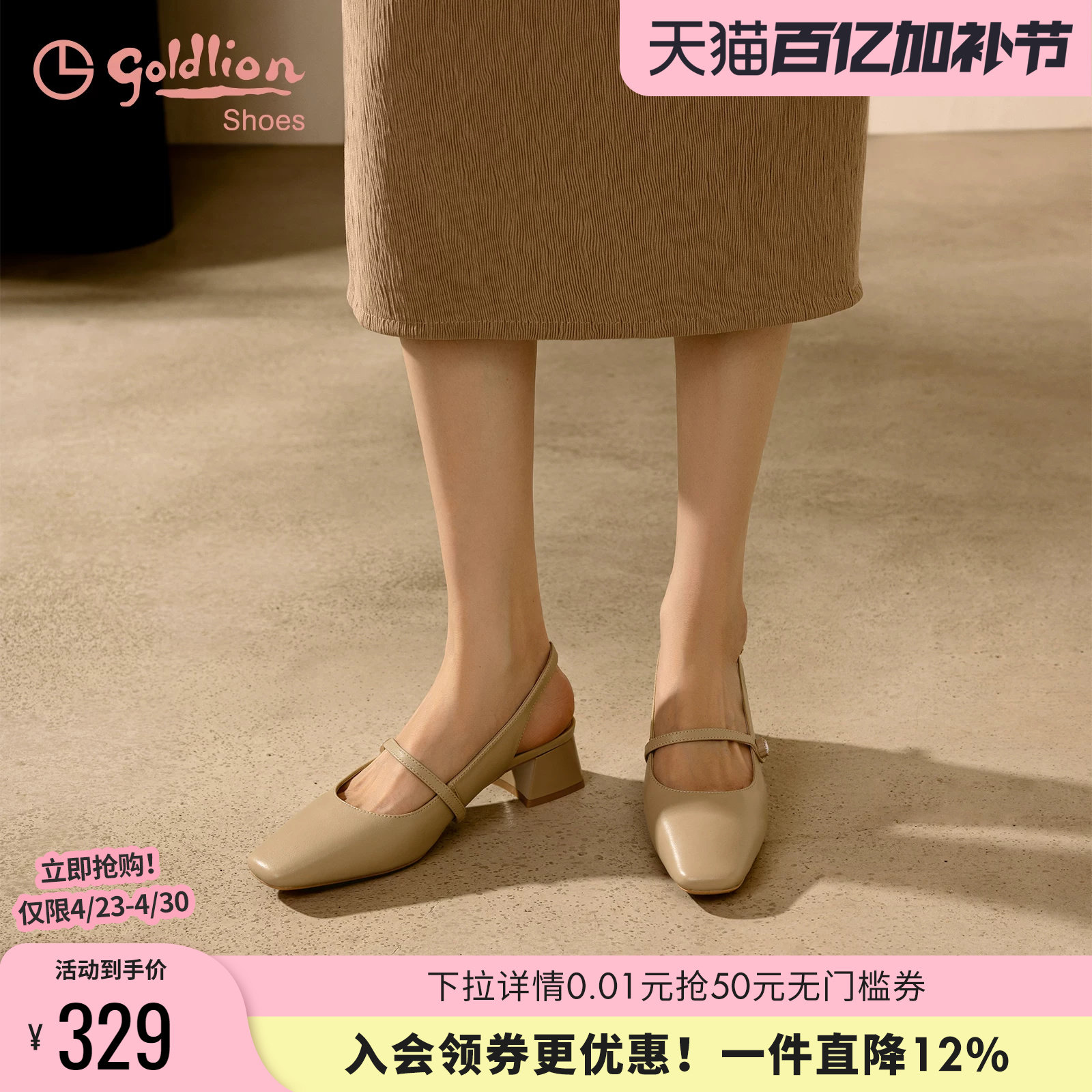 金利来粗跟玛丽珍单鞋女夏季新款通勤女鞋真皮包头后空一字带凉鞋