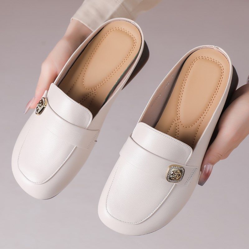 羊皮版~夏季外穿真皮包头平底半拖鞋女高级感凉拖鞋尖头法式半托