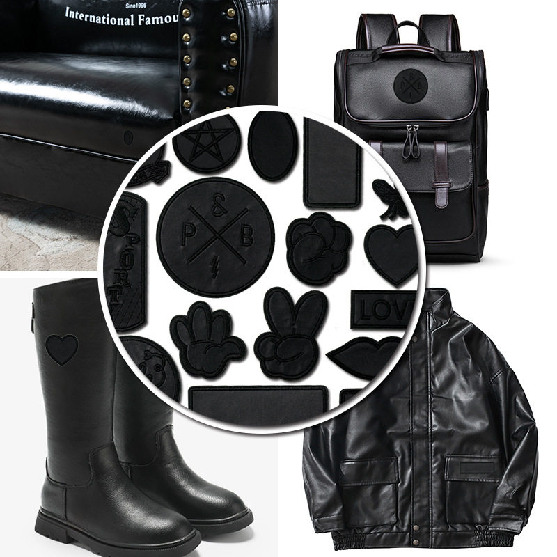 刺绣黑色自粘补丁贴皮衣服皮沙发皮包包皮革修复无痕修补装饰布贴