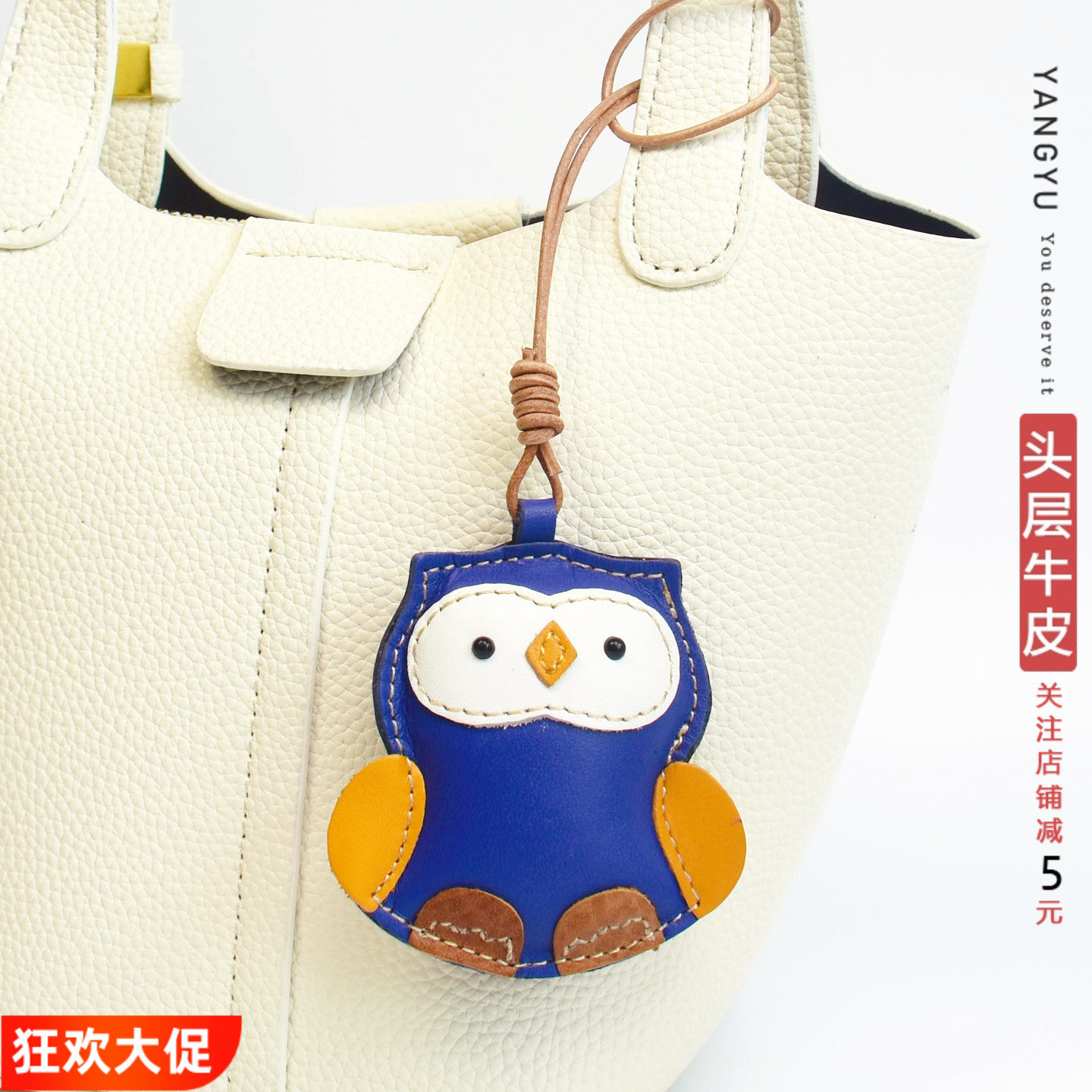 可爱猫头鹰~北欧钥匙扣挂件头层牛皮包挂饰奔驰宝马mini车内吊饰