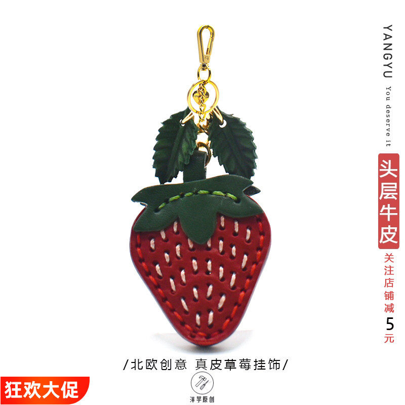 真皮小草莓~北欧ins牛皮包挂饰水果车钥匙扣挂件车挂饰手账书签潮