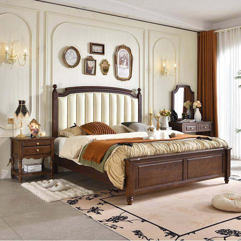 法式中古风床纳UHB帕皮包床复古美式床软实木桃心花木欧式床主卧