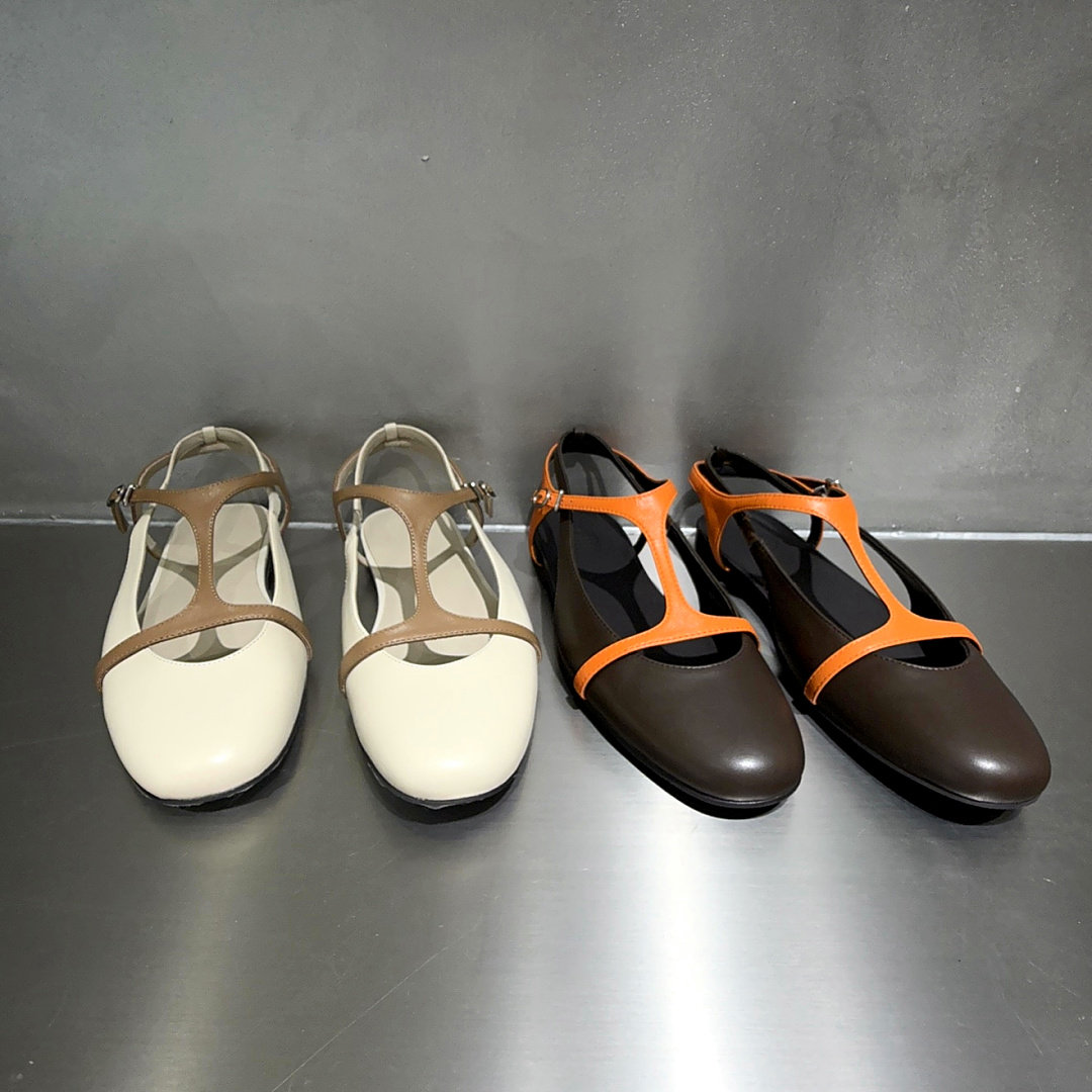 欧洲站欧货女鞋优雅真皮包头凉鞋女夏季一字扣带拼色平底显瘦单鞋