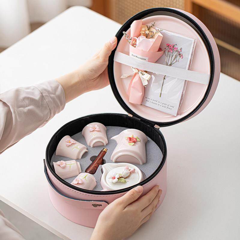 捏花旅行茶具小套装一壶四杯便携式收纳皮包功夫茶杯泡茶壶套茶盘