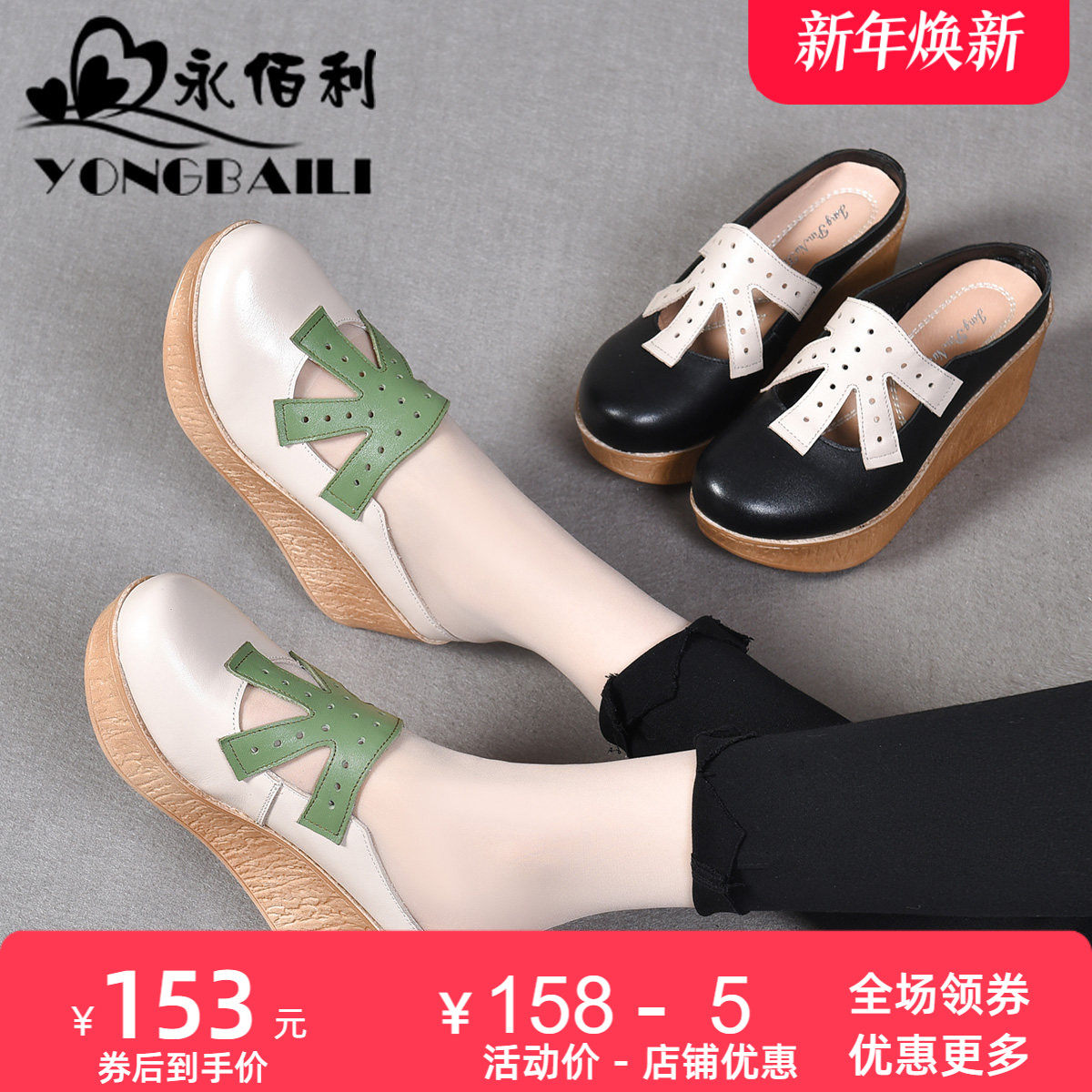 圆典2025秋季新款真皮包头半拖鞋女外穿懒人一脚蹬增高厚底勃肯鞋