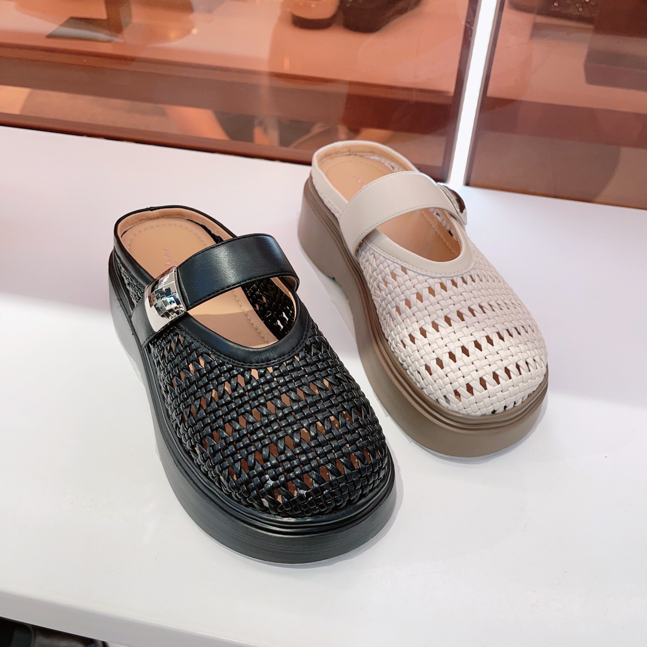 198-898玛莎玛索2026夏季新款编织皮包头拖凉拖牛皮厚底凉拖鞋女