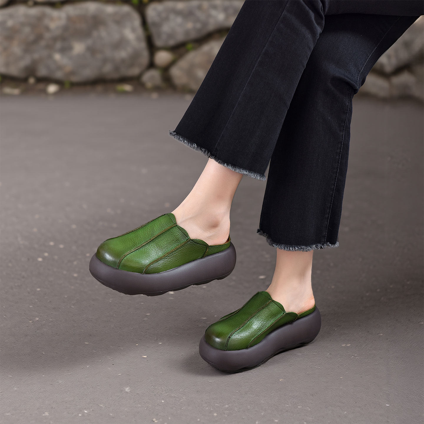 四起哥2026夏季复古风头层牛皮厚底半拖鞋女真皮包头松糕鞋休闲鞋