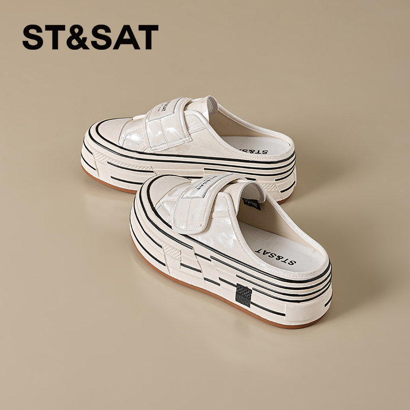 星期六厚底真皮包头拖鞋女2026夏季新款厚底休闲半拖百搭外穿拖鞋