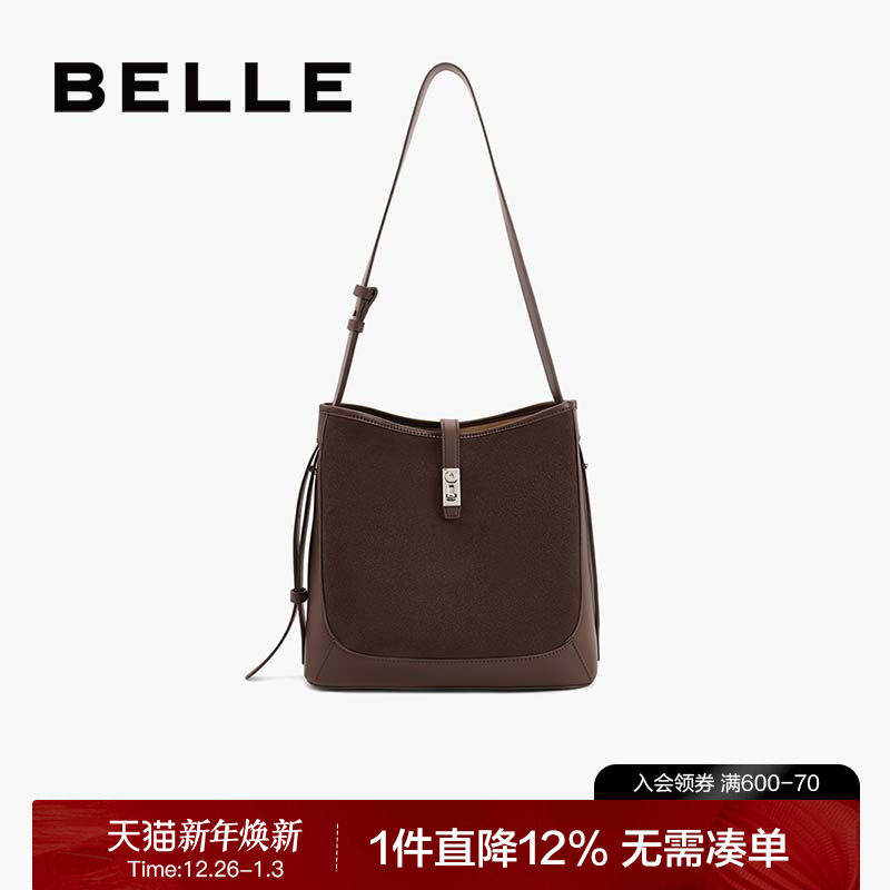百丽包包女托特包新款皮包复古绒面绒单肩包斜挎包水桶包F9694CX4