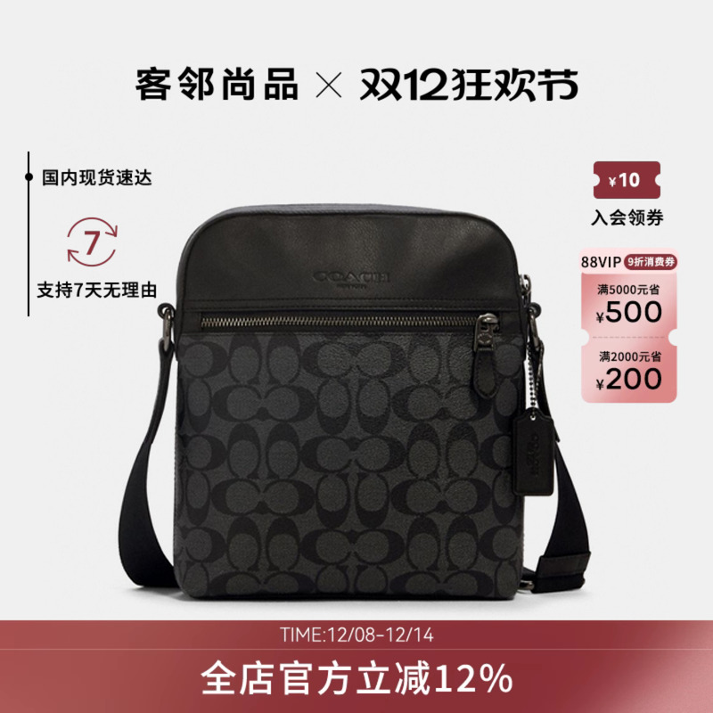 COACH/蔻驰男包印花经典商务休闲时尚单肩斜挎包正品公文包牛皮包