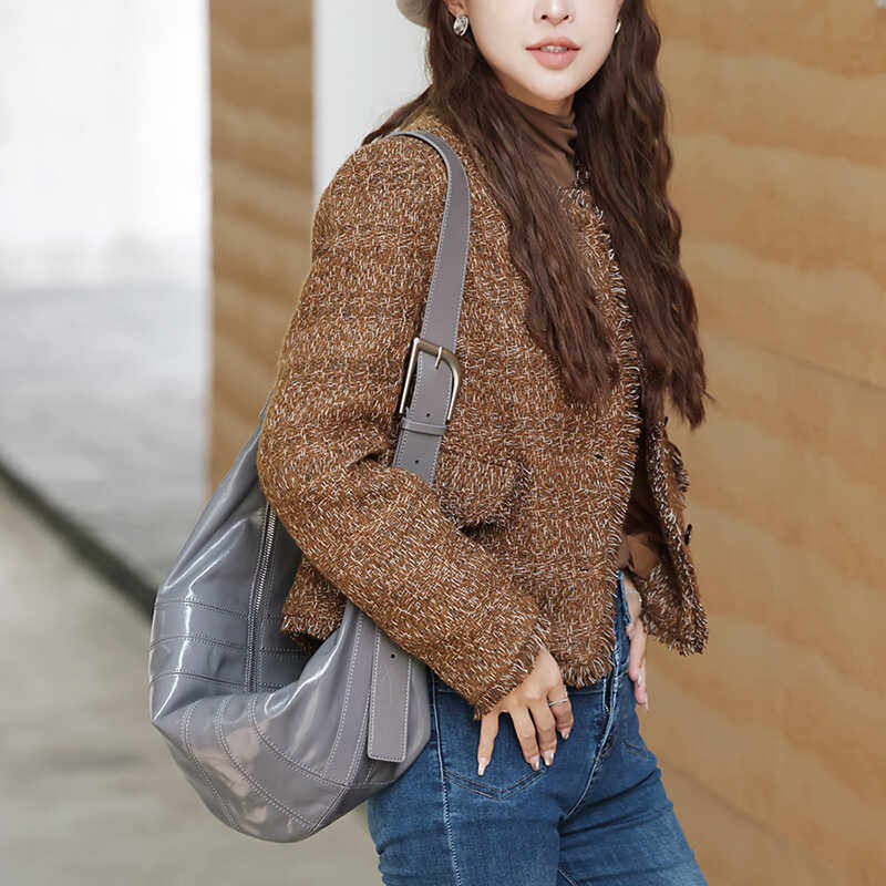 非城市生活包2026新款春夏斜挎小包美拉德配色牛皮包饺子包牛角包