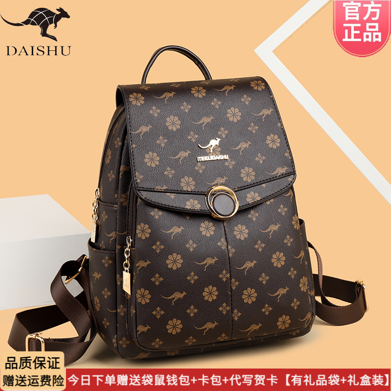 袋鼠双肩包女皮包2025新款时尚大容量女士轻便旅游包中年妈妈背包