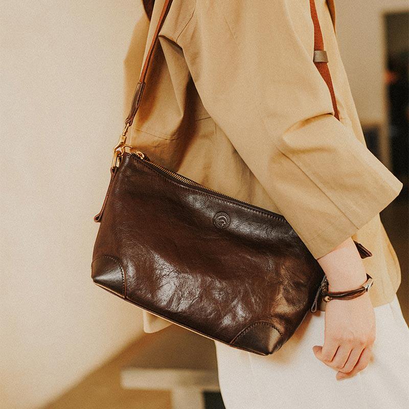 转山2023新款女真皮包大容量软牛皮休闲植鞣牛皮通勤单肩斜挎包潮