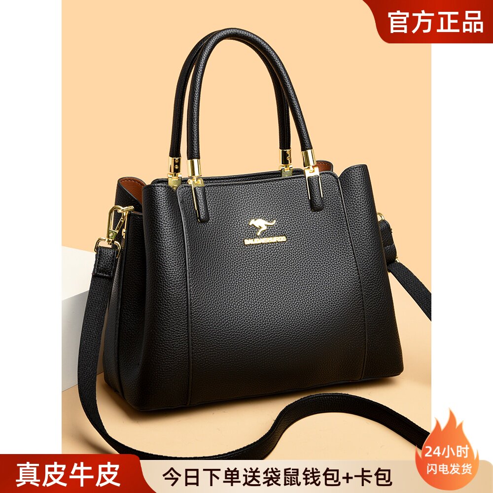 袋鼠时尚2025新款手提包真皮百搭简约中年妈妈包女士牛皮包斜挎包