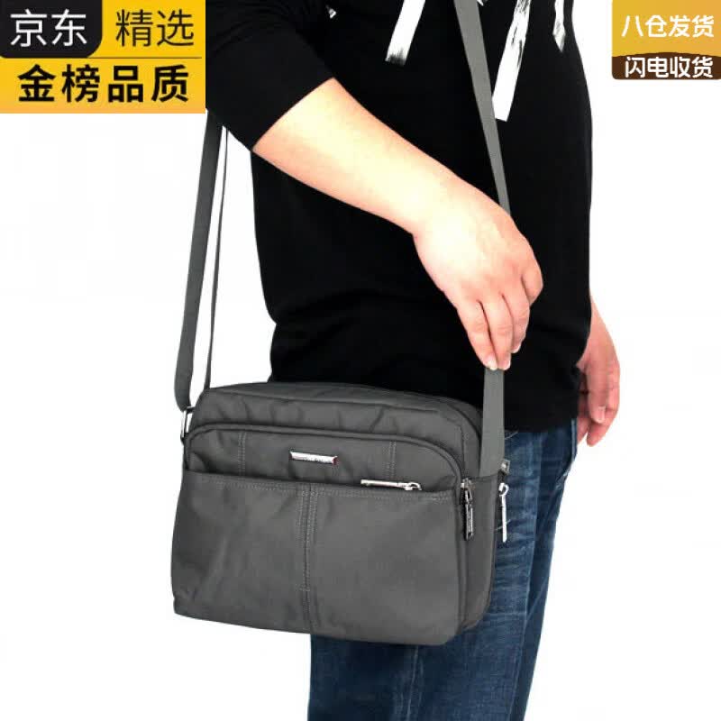 EKK日本进口品牌男士包防水牛津布肩斜挎包男士包商务包旅行名牌高端 灰色