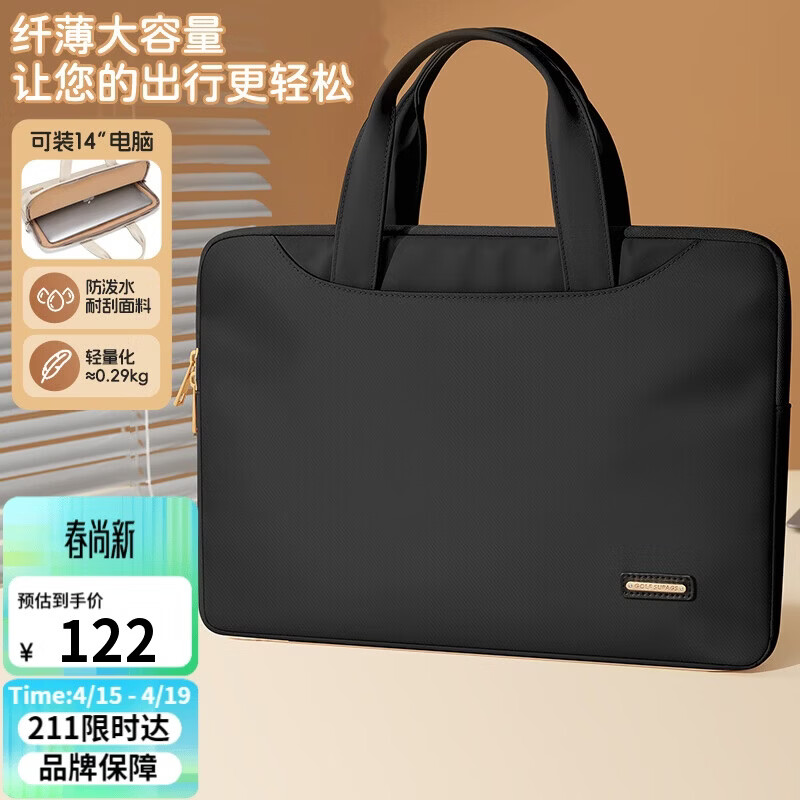 高尔夫(GOLF)电脑包女手提轻便商务公文包14英寸笔记本文件袋大容量单肩斜挎包