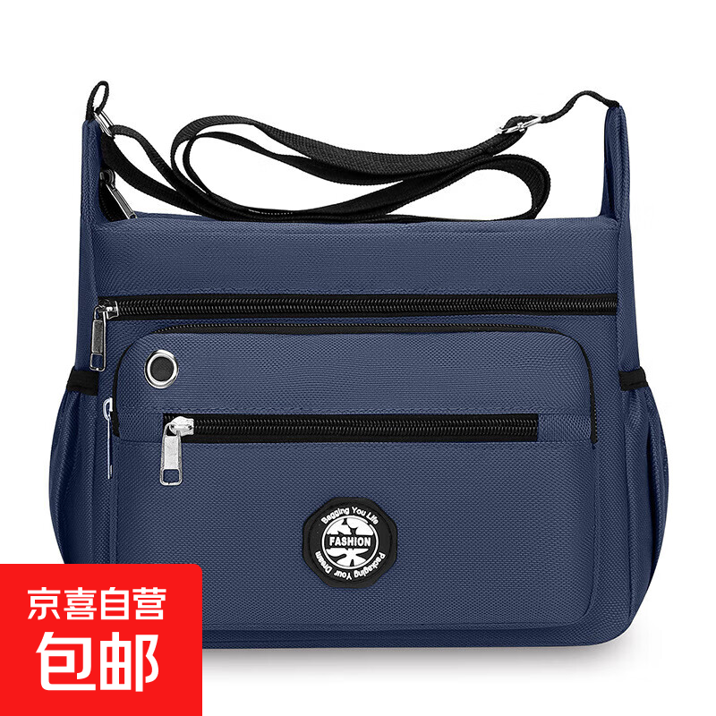 新款单肩包大容量防水耐磨背包多口袋生意包商务包休闲男士斜挎包 蓝色 无规格