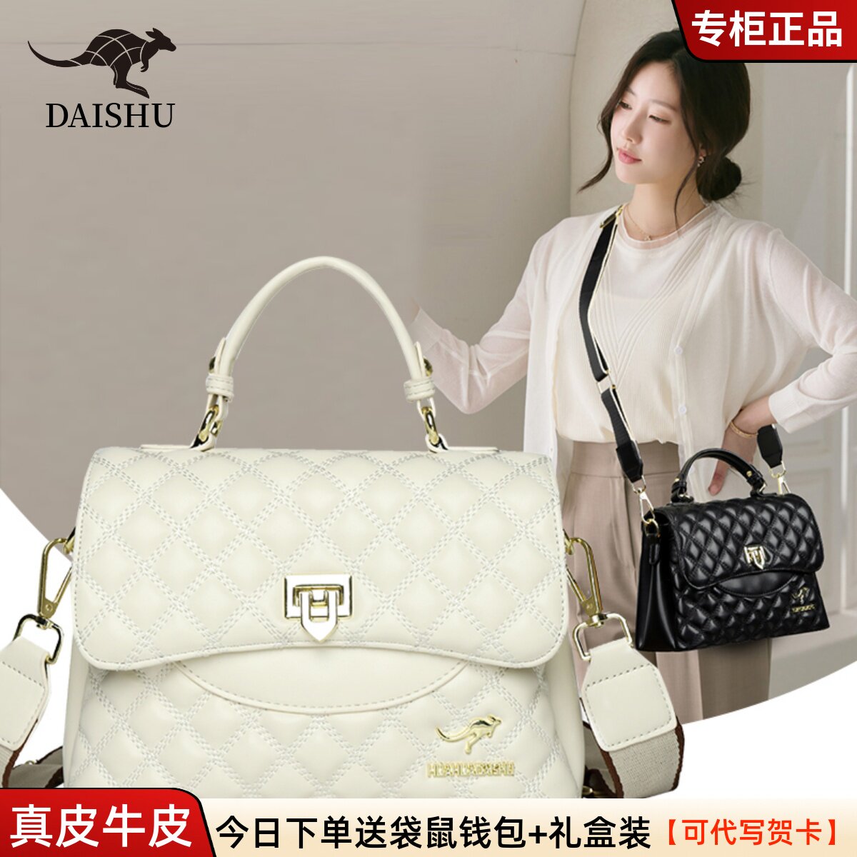 袋鼠正品真皮包包女2025秋冬新款斜挎包中年妈妈包高级感单肩小包