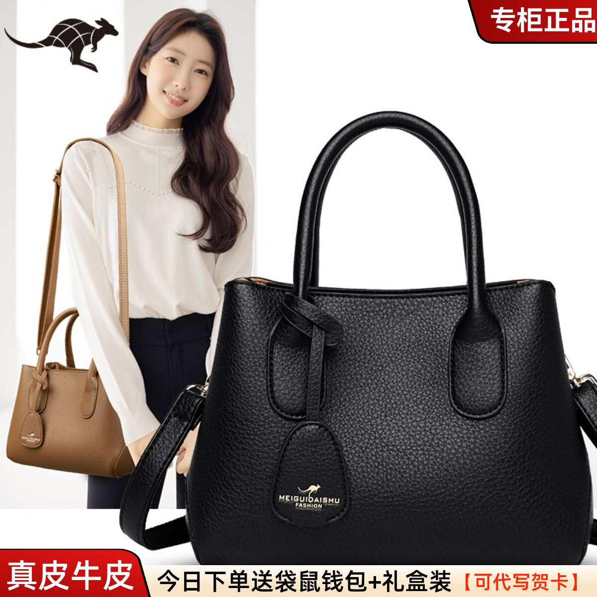 品牌袋鼠2025女士真皮包包中年妈妈包时尚大气手提包百搭斜挎包女