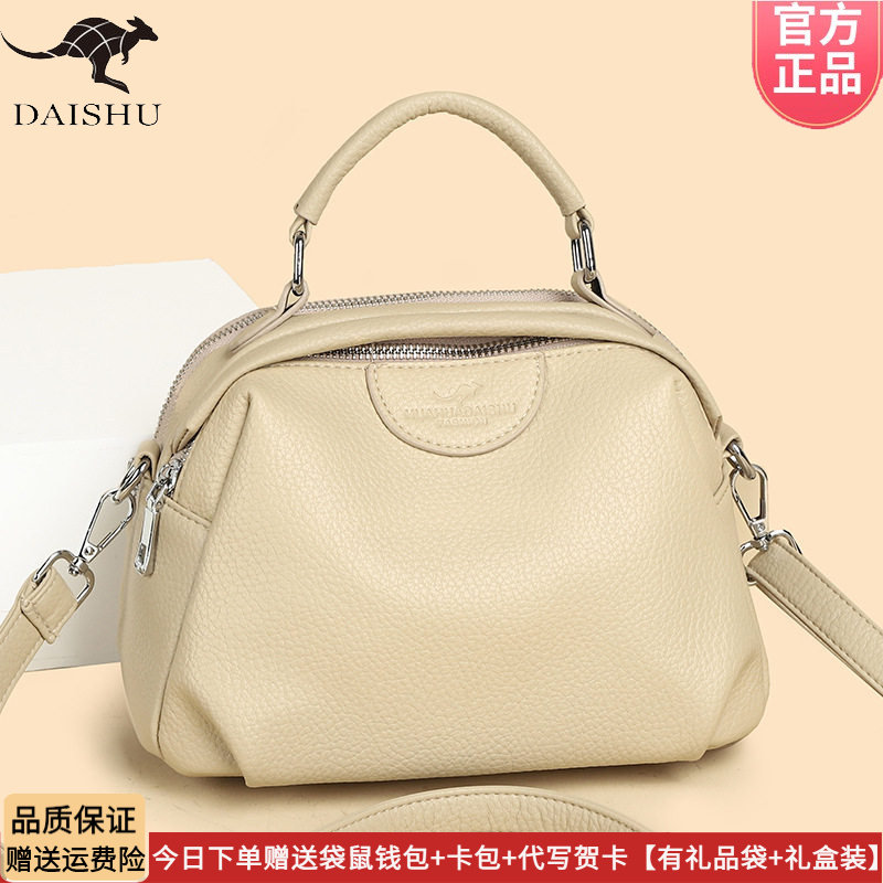 袋鼠正品女士手提包2026新款真皮妈妈包百搭时尚斜挎大容量牛皮包