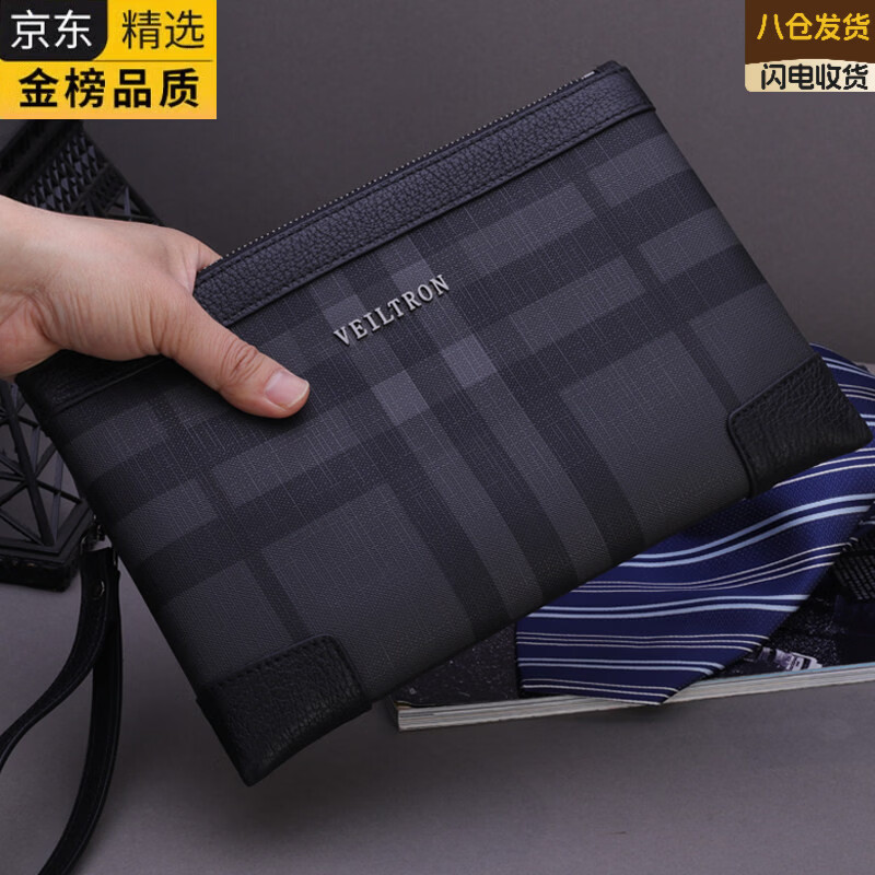 GIOIO德国进口品牌手包男士手拿包手抓包手拎包手挽包格子条纹牛皮包边