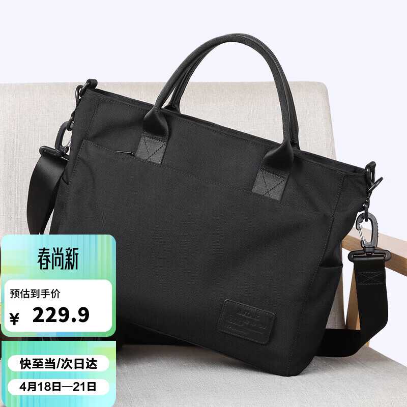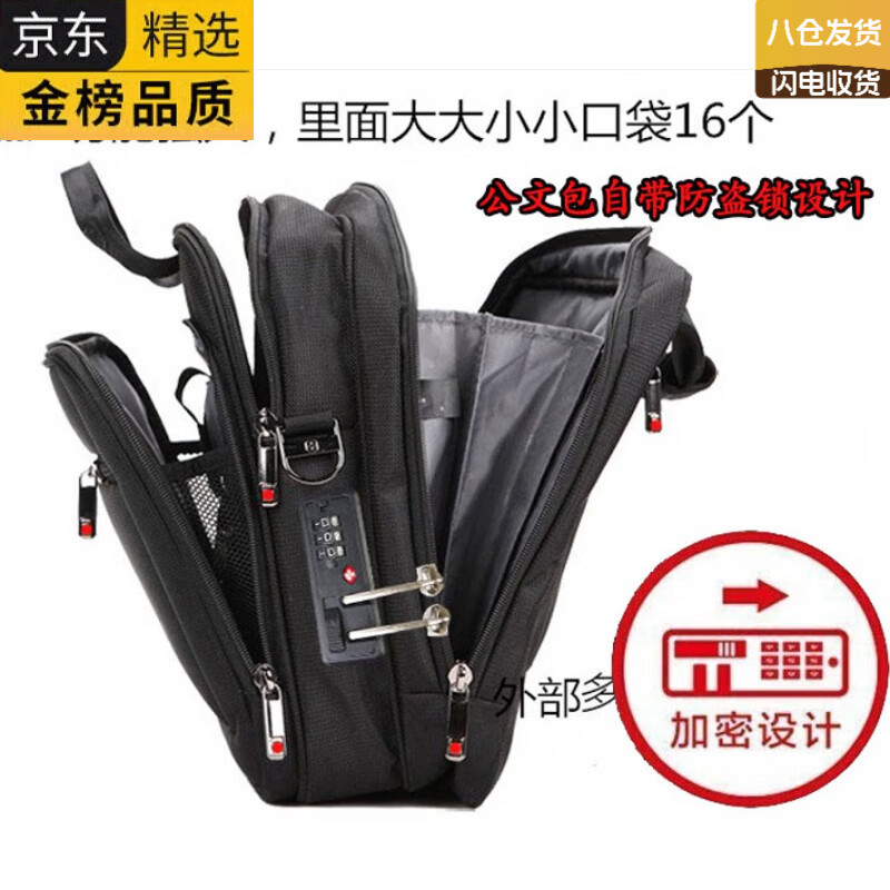MOEPEQDAISHU商务公文包男士手提包男多功能大容量防水耐磨牛津纺电脑包文件包 商务黑 大包 14英寸