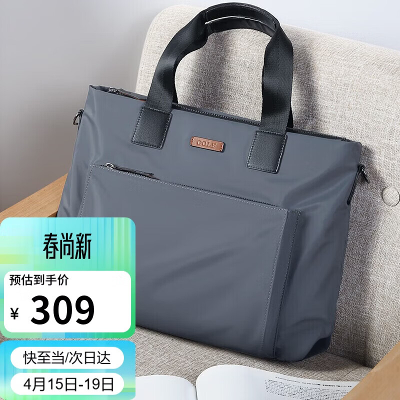 高尔夫GOLF商务公文包男士大容量手提包男15英寸笔记本电脑包轻便休闲单肩斜挎包横款公事包5I768317J灰色
