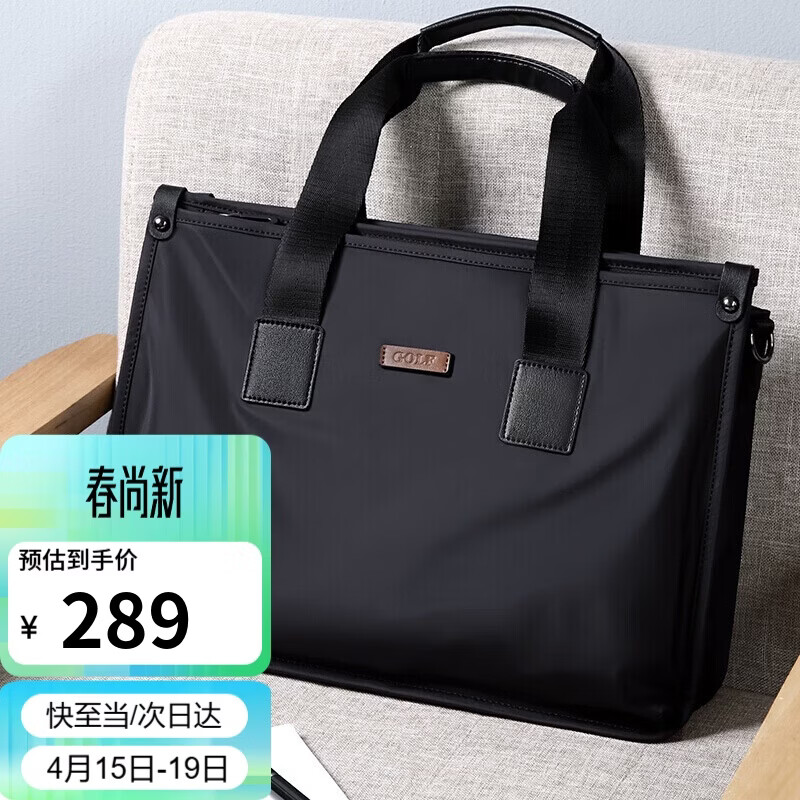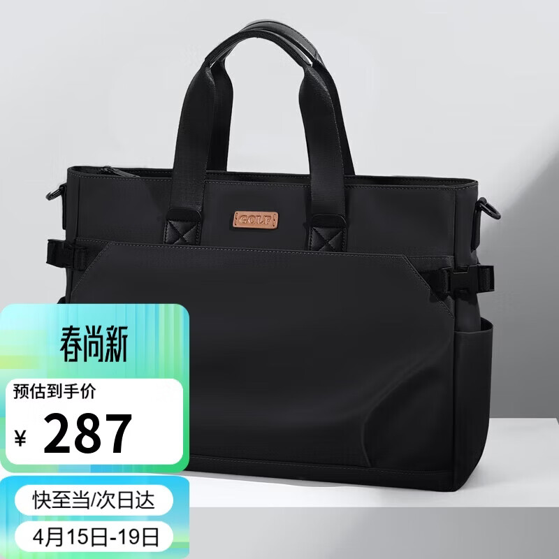 高尔夫GOLF商务公文包男士大容量手提包男可装15英寸电脑包多隔层休闲横款单肩斜挎男包 黑色 送男友父亲礼物