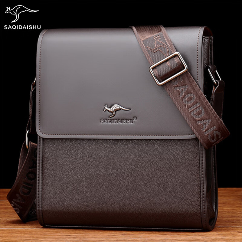 萨奇袋鼠(SAQIDAISHU)男士单肩包商务公文包时尚斜挎包通勤男包小背包休闲新款竖款挂包 棕色