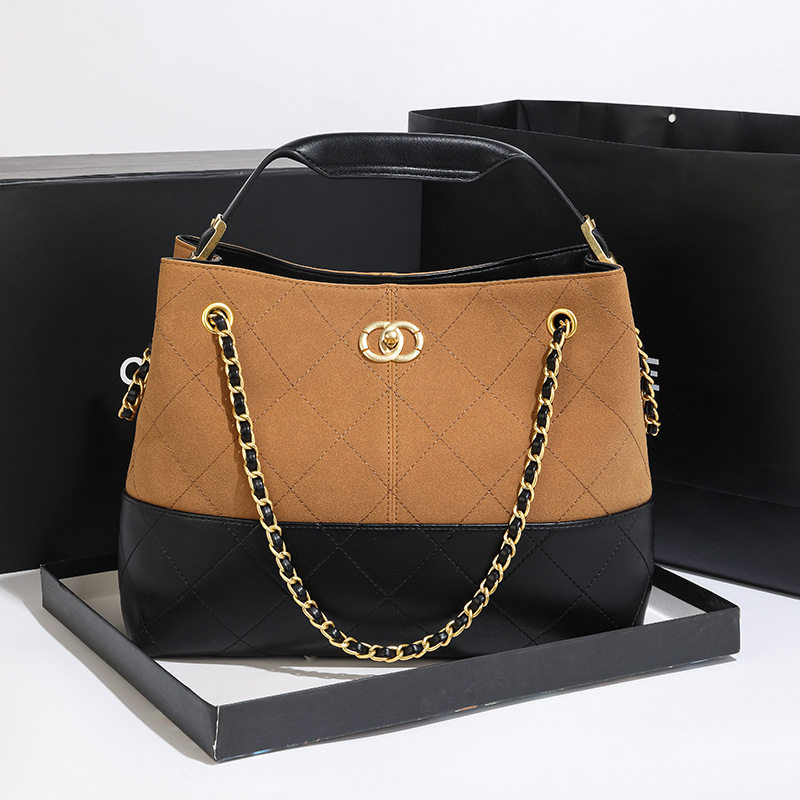 轻奢小香风麂皮包托特包女手提包新款链条包复古肩斜挎腋下包女包