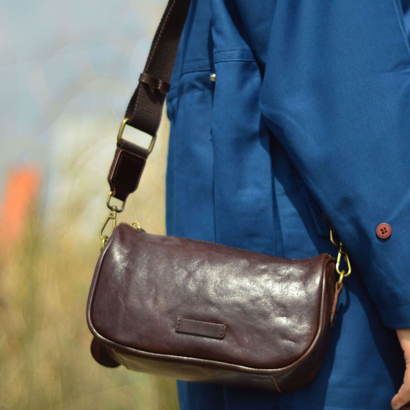 进口植鞣头层牛皮包手抓纹级质感女士竖版日字包迷你个性斜挎包