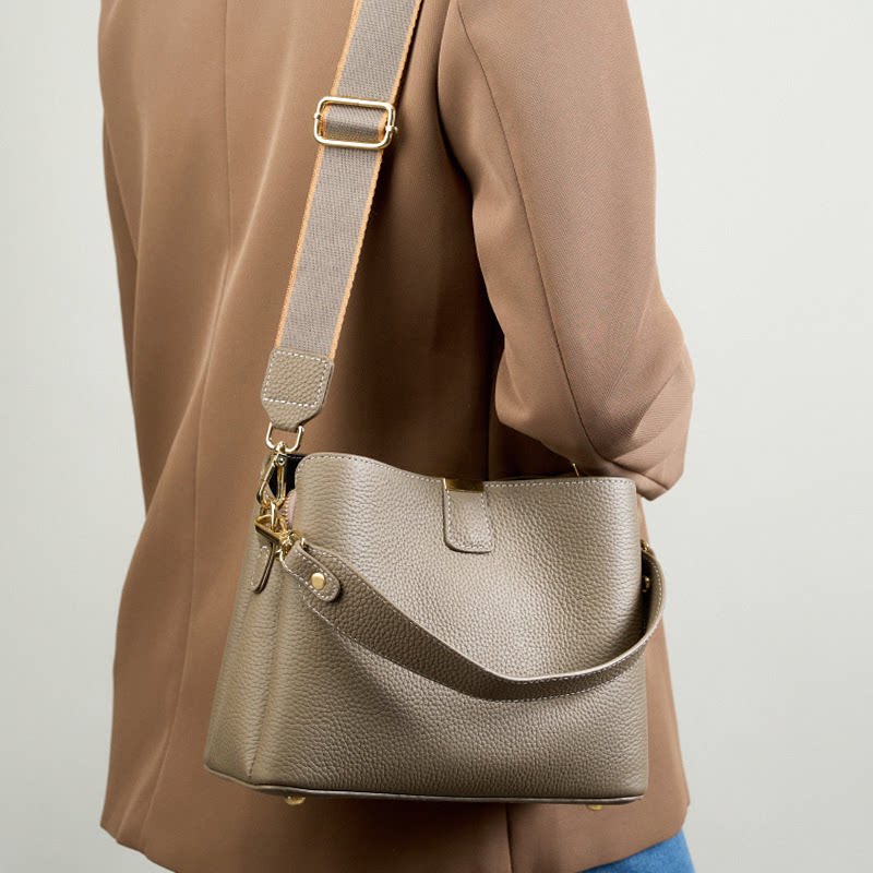 2026新款头层牛皮水桶包时尚简约百搭真皮包单肩斜挎手提包通勤包