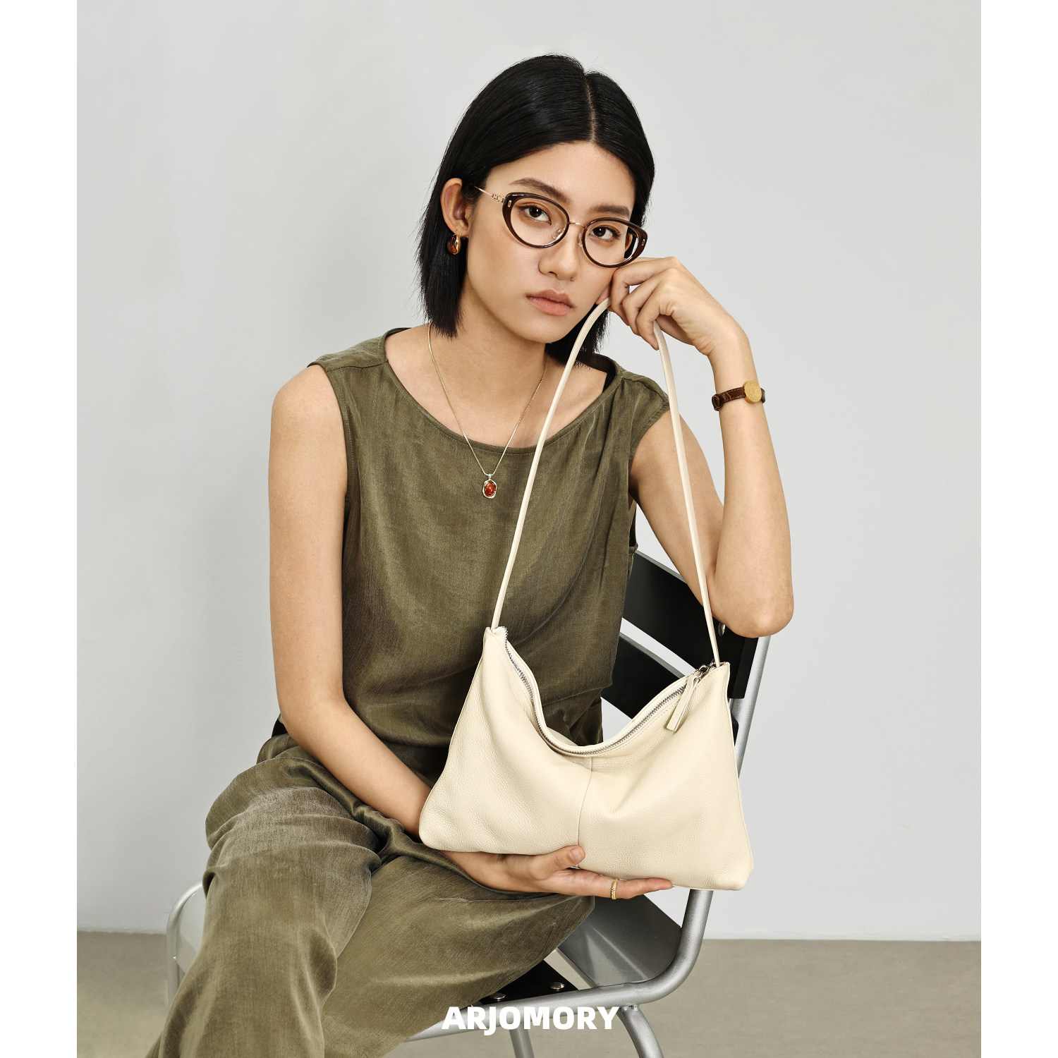 ARJOMORY小众设计头层牛皮hobo女包2026夏季通勤法棍包单肩斜跨包