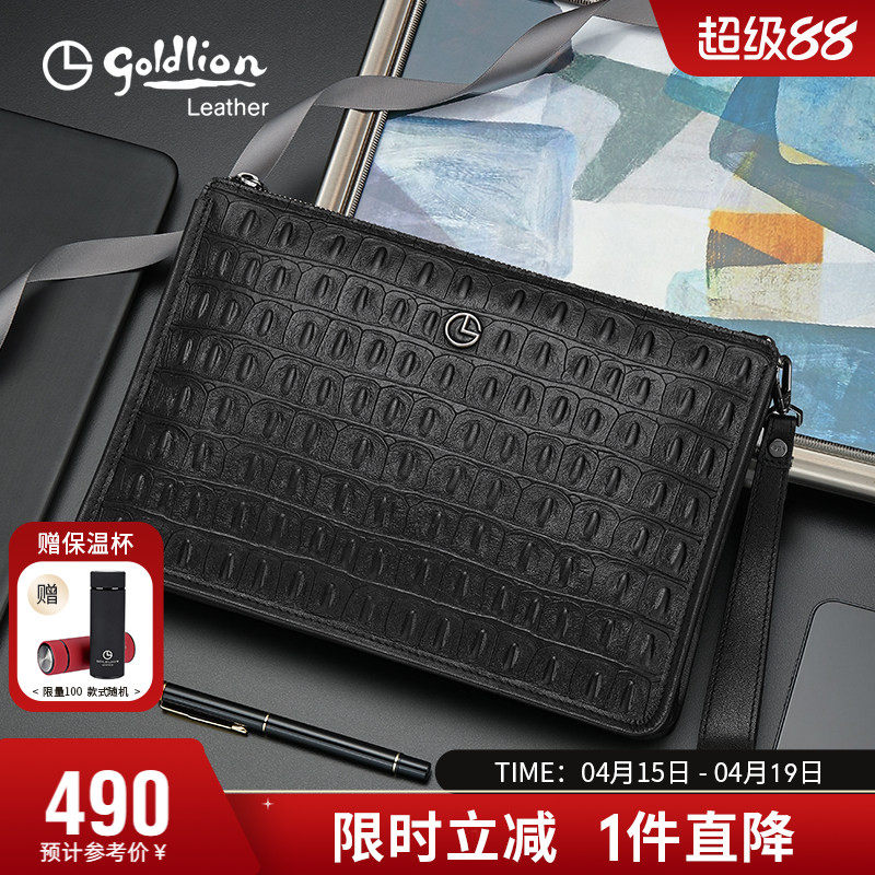 金利来手包新款真皮手拿包男士鳄鱼纹牛皮包商务轻奢大容量手抓包
