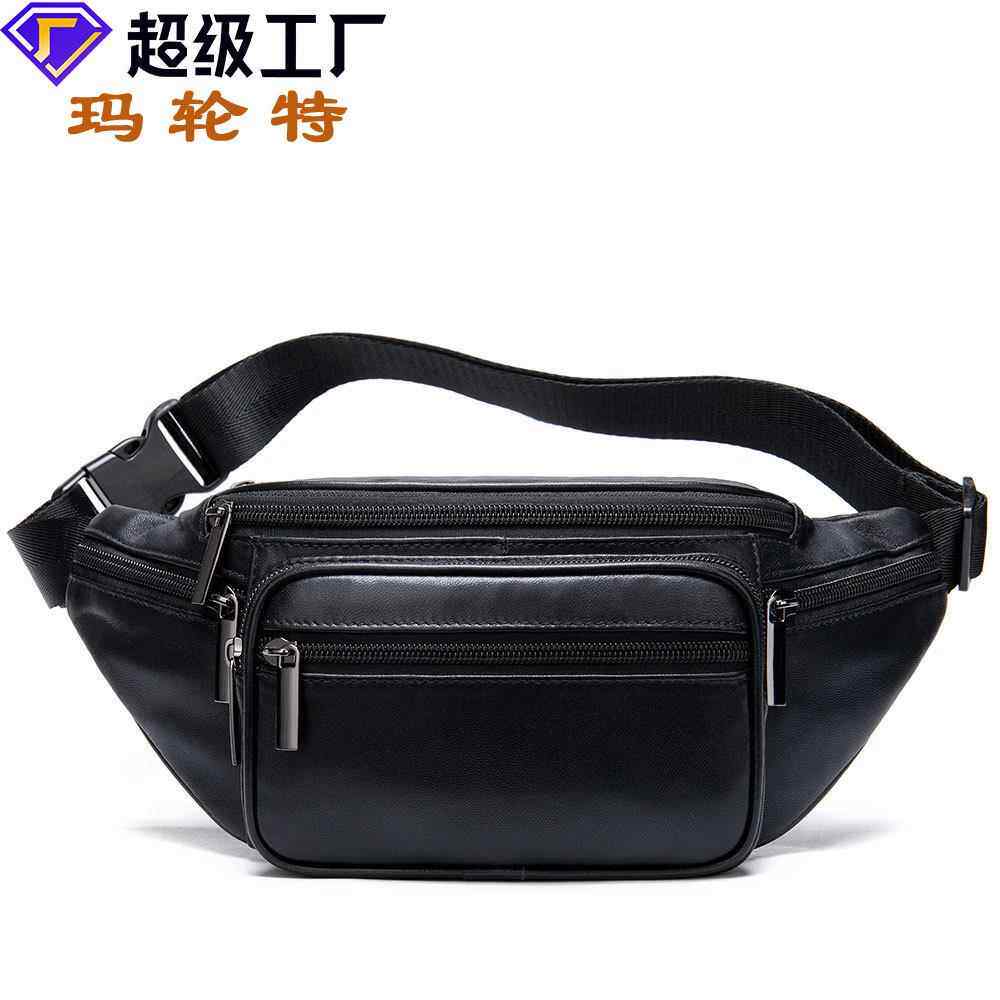 简约商务男士羊皮腰包户外黑色手机羊皮包休闲运动斜挎胸前包8879