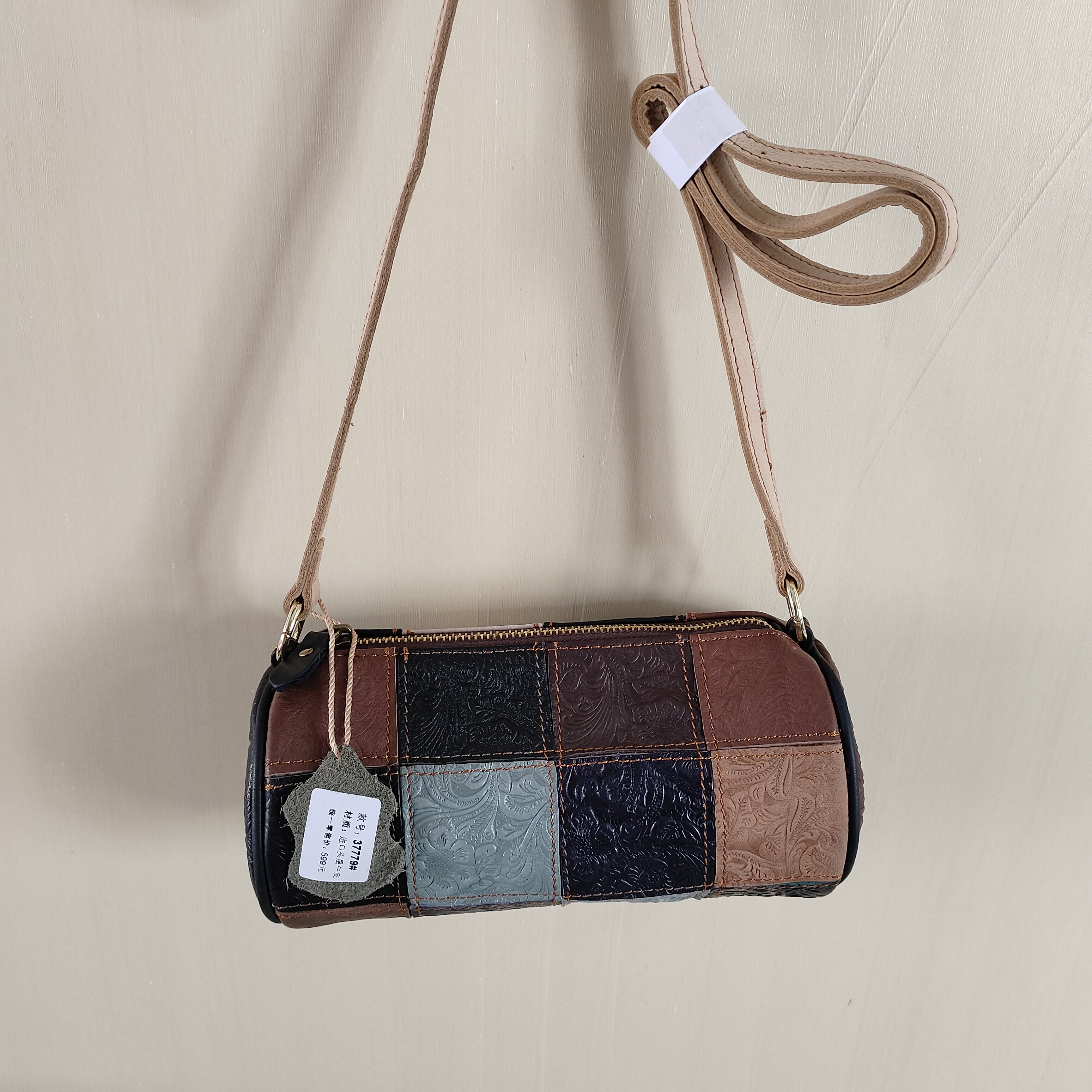 2026新款真皮女包圆桶全牛皮包拼接单肩包斜挎包女简约休闲小包包