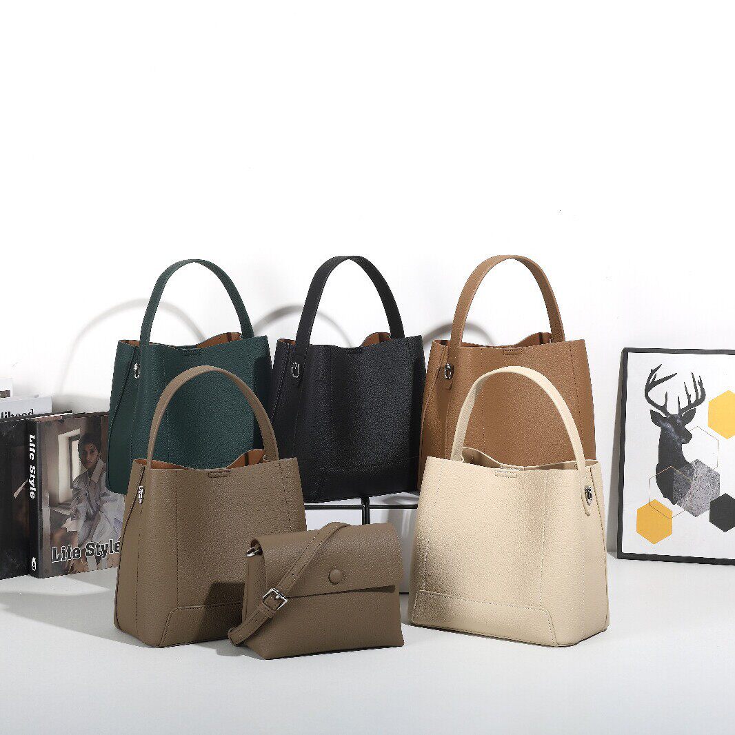 休闲牛皮包包新款女包洋气轻奢手提斜挎肩包级感水桶包时尚子母包
