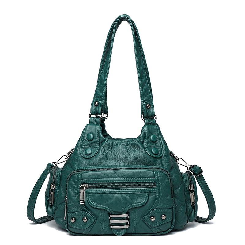 新品水洗皮包包女单肩斜挎包时尚中年女士妈妈包大容量多口袋软皮