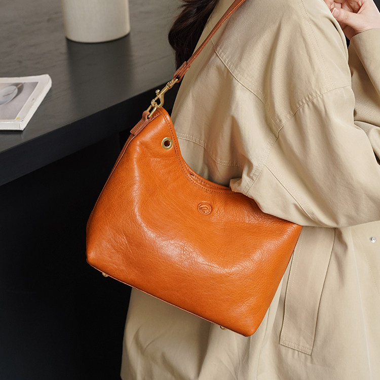 转山高级感大容量单肩腋下包包女2024新款时尚黄铜五金植鞣牛皮包