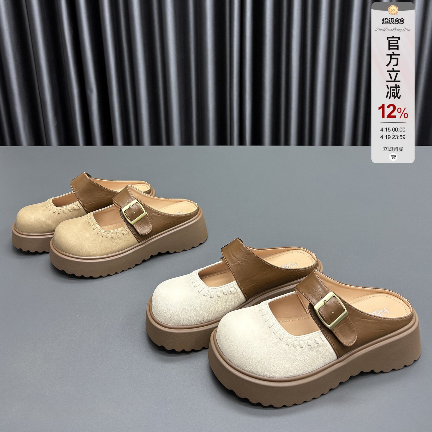 【羊皮】真皮包头半拖鞋凉拖女夏外穿2026新款平底一脚蹬鞋勃肯鞋